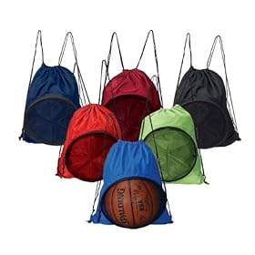 Sport Ball Drawstring Backpack-navy: Office Products. It's spacious interior is large enough to hold a towel, shoes and uniform or change of clothes. This clever drawstring backpack, made of ultra-lightweight 210d nylon, has a unique, zip-around, front mesh pocket that expands to hold a fullsize basketball, soccer ball, volley ball or playground ball.