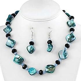 Turquoise Shell and Crystal Necklace and Earrings Set Fashion Jewelry: Jewelry. Its an intermix of shiny turquoise shells, black, and aurora borealis crystals! This 16 inch long necklace has a 2 inch extension and comes with matching fish hook dangle earrings. Here is a beautiful turquoise shell and crystal necklace and earrings set. Your set will come to you in a foil gift box great for gift giving.