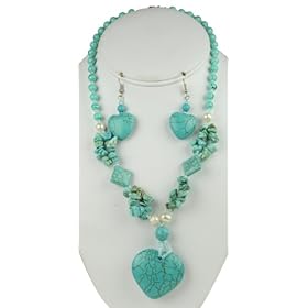 Turquoise Heart Natural Stone Necklace & Earring Set: Jewelry