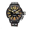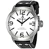 TW Steel Mens TW2 Canteen Black Leather Black Dial Watch: TW Steel: Watches. The simple black leather band connects with a buckle, so it stays on securely. With a clean black-and-white design, the TW Steel Men's Canteen Black Leather Black Dial Watch possesses a style that is both classic and cosmopolitan. A silver-toned stainless steel case, fixed bezel, and mineral window hold the good-looking black dial. Three white hands on the dial point to white baton markers and indices, all contrasting smartly with the dark black background. The face also features an inner bezel of Arabic numerals at the six and twelve o'clock positions, as well as a date display window at the three o'clock position. An oversized crown and push buttons sit near the three o'clock, adding style and function. The keeps precise time thanks to quartz movement.