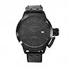 TW Steel Mens TW843 Canteen All Black Chronograph Watch: TW Steel: Watches. The supple black leather bracelet connects securely with a buckle. With a chic, sleek, all-black design, the TW Steel Men's Canteen All-Black Chronograph Watch is a beautifully unique take on an otherwise formal look. A black stainless steel case and fixed bezel hold the handsome mineral-window-protected black dial. Three hands on the dial point to baton markers and Arabic numerals for simple time-telling, along with a date display just below the four o'clock position. The face also features a tachymeter inner bezel and three subdials for more advanced calculations. An oversized crown and push buttons sit near the three o'clock, adding style and function. The watch keeps precise time thanks to quartz movement.