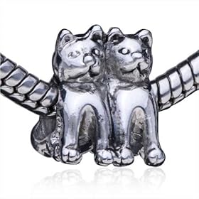 Twin Cat European Bead Fits Pandora Beads & Charms: Pugster: Jewelry. This bead is compatible with Pandora bracelets, and interchangeable with Pandora charms / beads! Made of pewter plated with silver, this bead will stand up beautifully to the test of time and wear.