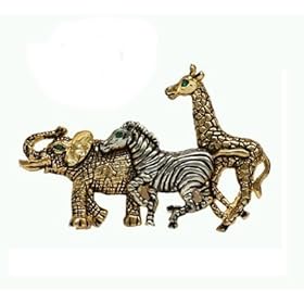 Two-Tone African Animal with Green Crystal Brooch Pin: Jewelry. Here is a fun two-tone african animal brooch.