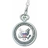 U.S. Marine Corps. Medallion inch Pocket Watch with Chain: Watches. The watch itself sports a white dial and features precise Japanese quartz movement. Show your support for the United States Marine Corps with the Medallion inch Pocket Watch with Chain. The insignia of the armed forces is displayed prominently on the round metal case, surrounded by a decorative border. The timepiece is protected by a durable mineral crystal and is water resistant to 25 feet.