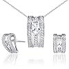 Unforgettable Beauty: Sterling Silver Rhodium Finish Pendant Necklace Earrings Set with Cubic Zirconia: peora