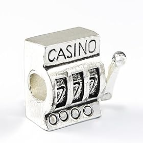 Las Vegas Slot Machine Olympia Bead Charm - Compatible with Pandora & Troll Bracelets: Jewelry. Plated metal base core which slides on the bracelet with ease. Olympia Charm (as pictured) compatible with Pandora, Troll, Chamilia and other major brand bracelets. Two images of the bead charm are displayed.