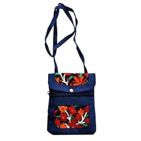 Velvet Blue Passport Bag: Everything Else. The strap on this bag is 64 inches long and this bag is 9 inches long and 7 inches wide. This bag is made from suede leather. There are flowers embroidered on the front of the bag and these were sewn by hand. The material used under the embroidery is wool. This handbag was handmade in Nepal.