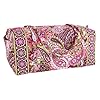 Vera Bradley XL Duffel Happy Snails: Clothing. Exterior slip pocket on one end. Whoever said you can't take it with you just didn't have a big enough bag! Like this Extra Large Duffel from Vera Bradley. The same great duffle style that is so popular, just roomier. Quilted Vera Bradley fabric with padded shoulder straps. Zip top opening with Vera Bradley Signature ribbon pull. Zips open to another fun Vera Bradley fabric lined center with tons of space.