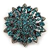 Victorian Corsage Flower Brooch (Antique Gold & Teal): Jewelry. Featuring a layered flower design, crafted in antique gold metal and heavily encrusted with teal coloured crystals. Add a chic finishing touch to your outfit with this glamour Victorian Corsage Flower Brooch.