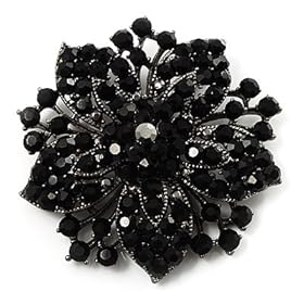 Victorian Corsage Flower Brooch (Silver&Jet Black): Jewelry. The silver-tone brooch is decorated with jet black crystals set in the shape of a beautiful flower, providing an eye-catching look. Add a chic finishing touch to your outfit with this glamour Victorian Corsage Flower Brooch.