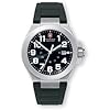 Victorinox Swiss Army Mens 24135 Maverick II Black Dial Watch: Swiss Army: Watches. A sturdy, stainless steel case provides durability and strength, while a tough, black rubber watch strap is secured with a fold-over, push-button clasp for added security. The rugged Swiss Army Men's Maverick II Black Dial Watch is suitable for both outdoor enthusiasts and urban dwellers. The bold, black dial features Arabic numeral hour indexes with the three, six, and nine o'clock positions larger than the others and the Swiss Army logo at the 12 o'clock position. The wide, luminous silver-toned hands allow for easy reading of the dial -- plus, it features a 24-hour index around the inner perimeter and an index from zero to 60 engraved on the unidirectional, black ion-plated stainless steel bezel. The anti-reflective, sapphire crystal provides ultimate scratch resistance.