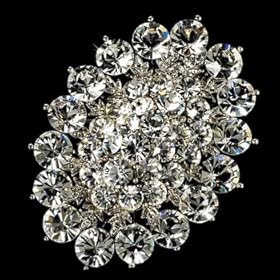 Vintage Crystal Silver Bridal Brooch Pin Hair Clip: Jewelry. The brooch measures 1-3/4 inch across and 2-1/2 inch from top to bottom. glittering ring of rhinestones encircles silver plated leaves in this memorable and dazzling brooch. Ideal for your modern wedding. This rhinestone brooch can either be pinned on your gown or worn in your hair with one of our slide on comb pin adaptors.