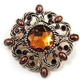 Vintage Filigree Crystal Brooch (Antique Gold&Amber Coloured): Jewelry