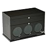 Volta 31-560030 Belleview Collection Triple (3) Carbon Fiber Watch Winder: Watches. You are able to select a clockwise setting, a counterclockwise setting, or a combination of clockwise and counterclockwise revolutions. This Volta 3 watch winder features a high gloss carbon fiber finish with a black leather interior and is part of the Belleview Collection. The inside portion of this winder is lit by a white LED light that beautifully showcases the watch that is mounted onto the winder. On the top of the winder, you will find a storage space for 5 watches. The watch portion of the winder can be locked using the supplied key. Each of the watch mounts is powered by its own high quality and ultra quiet Japanese Mabuchi motor. The winder is powered by a supplied 110/240v adapter. To control the motor of the winder, you will find an LCD screen on the back side of the winder. Using the buttons to the right of the screen, you can control the revolution direction and the speed (TPD) of the winder. With this Volta winder, you are able to select a speed (TPD) setting of 650, 900, 1350, or 1800 revoltions, so you will definitely be able to find the right setting for your specific watch.