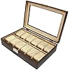 Watch Box for 10 Watches Cherry Matte Finish XL Extra Large Compartments Soft Cushions Clearance Window: Watches