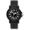 Wenger Swiss Military Mens 72915 Classic Field Black Dial Canvas Leather Military Watch: Watches. The dial also includes slim minute indexes, a clearly marked 24-hour clock cycle, and a date calendar at three o'clock. The Wenger Swiss Military Men's Classic Field Military Watch showcases superior construction and quick-charge luminous hour markers and watch hands, making it a highly functional, yet simple timepiece. Constructed with a stainless steel case, the watch includes a black stationary stainless steel bezel and a black nylon wristband secured with a buckle clasp. A durable mineral window protects the black dial, which features luminous Arabic numeral hour markers with the Wenger Swiss logo resting in the 12 o'clock position. Featuring Swiss-quartz movement, this timepiece is water resistant to 330 feet (100 M).