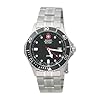 Wenger Swiss Military Mens 72948 Brigade Military Watch: Watches. The dial also includes slim minute indexes and a date calendar at three o'clock. Ideal for the rigors of military training, the Wenger Swiss Military Men's Brigade Military Watch showcases superior construction, a unidirectional bezel, and quick-charge luminous hour markers and watch hands, making it a highly functional and reliable timepiece. Designed with a stainless steel case, the timepiece also includes a unidirectional stainless steel bezel with Arabic numeral etchings at 10-minute intervals, and a stainless steel link wristband secured with a fold-over clasp. A durable mineral window protects the metallic blue dial, which features luminous hour markers with Arabic numerals at six and nine o'clock, and the Wenger Swiss logo at the 12 o'clock position. Featuring Swiss-quartz movement, this timepiece is water resistant to 330 feet (100 M).