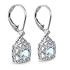 14k White Gold Aquamarine Princess Cut and Diamond Earrings: Jewelry