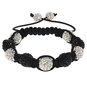 10mm White & Black Pave Disco Ball Beads Hip Hop Style Adjustable Bracelet: Jewelry