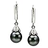 14k White Gold Black Tahitian Cultured Pearl Earrings: Jewelry. The pearls contain a breathtaking clean finish and high-luster that grants them a luxurious look. Tahitian pearls take on edgy character with the 14k Rose Gold Chocolate Tahitian Pearl Earrings. Rich white and black iridescent hues emerge from these drop earring shapes. A white gold fishhook backing holds each 9-9.5mm chocolate pearl in place. The basic tones of this elegant pair make it appropriate with both casual and formal wear.