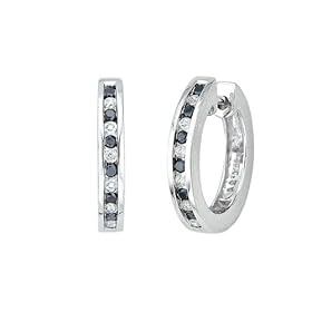 10K White Gold, Black and White Diamond Huggie Earrings, Channel Set (1/4 cttw): Katarina: Jewelry. The epitome of sophistication, these huggies radiate classic elegance.