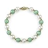 Jade, White Freshwater Pearl, and Gold Bead Dangle Earrings on 14K Yellow Gold Chain: Pearlzzz
