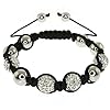 10mm White Micro Pave With Black Ball Adjustable Bracelet: Jewelry