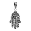 Womens Necklace & Earrings Set, Hamsa (Hands of God) Silver Burnished/ Jet Hematite/ Clear: Jewelry