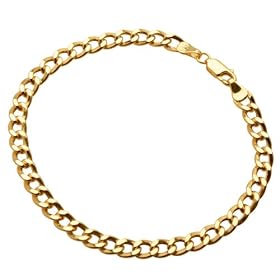 10k Yellow Gold 5.5mm Diamond-Cut Curb Chain Mens Bracelet, 8.5: Jewelry. Fastening with a 10 yellow gold lobster-claw clasp, the bracelet closes securely so it's great for a range of lifestyles and activities. For a rich, refined look and feel, choose the Men's 10k Gold Diamond-Cut Curb Chain Bracelet. This simple yet classy bracelet is made from bright 10k yellow gold, an heirloom-quality metal with a warm tone. The single strand of diamond-cut curb chain measures 5.5 millimeters wide and lies flat against the wrist. The bracelet measures 8.5 inches long for a comfortable fit on most wrists.
