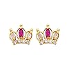 14K Yellow Gold Crown Red CZ Stud Earrings with Screw-back for Baby & Children: The World Jewelry Center