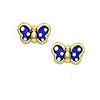 Solid 14k Yellow Blue Enamel Childrens Butterfly Earrings - JewelryWeb