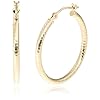 14k Yellow Gold Diamond-Cut Oval Hoop Earrings with Shepherds Hook: Jewelry