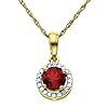 10k Yellow Gold Round Ruby Diamond-Framed Stud Earrings: Jewelry