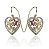 18k Yellow Gold Plated Sterling Silver Ruby Flower Dangle Earrings: Jewelry