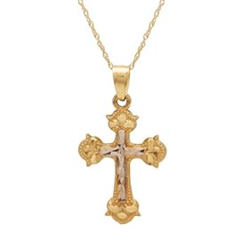 10k Yellow Gold Polished Diamond-Cut Cross Pendant, 18: Jewelry