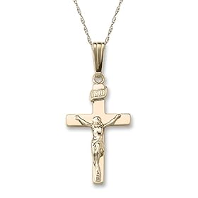 14k Yellow Gold Solid Crucifix Cross with Rope Chain Necklace, 18: Jewelry