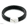 Zina Sterling Silver Mens Stratus Bracelet With Leather Strap Silver: Jewelry. Matching cord ends connect to a chunky sterling silver lobster-claw clasp for easy wearing. Zina's Leather Strap Stratus Bracelet is the ideal accessory for the guy who loves the look of leather with metal. Made from a tightly braided, round strap of black leather, the bracelet measures 8.5 millimeters wide. The strap holds two tube beads, made from 925 sterling silver, with striped etchings that are oxidized for a dark-meets-light contrast. The bracelet measures 8.5 inches long, ideal for most men's wrists and completely comfortable to wear with or without a watch.