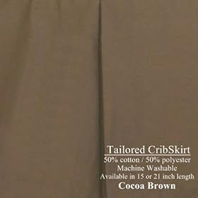 15 inch long Tailored CribSkirt Crib Dust Ruffle Cocoa Brown: Baby. Because this dust ruffle is 4 sided, you are able to position your crib however you choose! These tailored Cribskirts are made of a high quality Cotton & Polyester Blended fabric. From AB Lifestyles... A 15 inch tailored Cribskirt in warm COCOA BROWB. Our tailored Cribskirt features a pleat on each of its 4 sides. A generous 15 inch drop gives you a bedskirt that nearly reaches the floor! Each of the corners are split so it hangs beautifully without the legs of the crib causing it to bunch up. In many colors, you will find the perfect cribskirt for your nursery! We offer 2 variations of Cribskirts: Tailored or Gathered and both are available in 2 lengths: 15 inch for when your crib mattress is set at the lowest setting, and 21 inch for when your baby is an infant and the crib mattress is set on the higher setting.