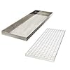 35.875 Inch Countertop Bar Drip Tray - Stainless Steel - No Drain: Kitchen & Dining. Specs: Dimensions: 35 7/8L x 5 3/8W x 3/4H. . Counter top trays are used under a draft beer tower to catch spills or drips from the faucet. These are set on top of the bar under your faucet, NOT built into the bar. This particular tray does not have a drain hole so the tray is emptied out manually. Features: Made of stainless steel. NO Drain. Ships within 5 business days.