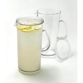 60 oz. All-Purpose Pitcher with Lid: Kitchen & Dining. Ideal for cold beverages, water, juice, iced tea, lemonade and also able to handle hot beverages such as coffee and tea. This all purpose polycarbonate pitcher is dishwasher safe and can be utilized in the freezer and microwave. Will not crack, chip, shatter or discolor after repeated dishwashing cycles. The nature of the polycarbonate offers superior insulation for your hot and cold beverages.