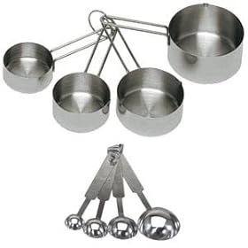 NEW, 8-Piece Deluxe Stainless Steel Measureing Cup and Measuring Spoon Set (1/4-cup, 1/3-cup, 1/2-cup, 1-cup, 1/4-tsp, 1/2-tsp, 1-tsp, 1-Tbsp): Kitchen & Dining. A essential addition to any well-equipped kitchen -- these measuring cups and measuring spoons provide accurate measurements of the ingredients for all cooking needs. .