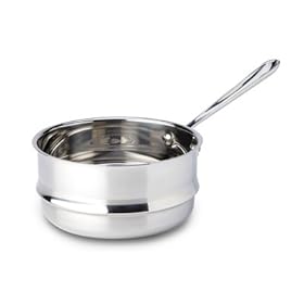 All-Clad 3-qt. Stainless Steamer Insert: Kitchen & Dining. Enhanced stick handle, same classic design. An essential for the well-equipped kitchen. The Universal Steamer fits All-Clad 8-in. diameter sauce pans and can be used for steaming and reheating. Features: 18/10 Stainless Steel. Riveted stainless steel handles. Larger loop handles for more stability.