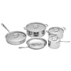All-Clad Cast Aluminum 5-1/2-Quart Dutch Oven with Two Oven Mitts: Kitchen & Dining. Made of heavy gauge cast aluminum for superior heat distribution, this Dutch oven is ideal for making delicious braised meats in the oven while also being versatile enough to simmer soups and stews on the stovetop. This set includes an All-Clad cast aluminum 5-1/2-quart Dutch oven with stainless steel lid and two All-Clad red cotton oven mitts.