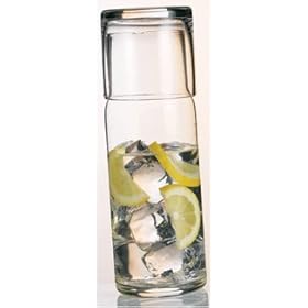 All in One Handcrafted Carafe and Tumbler Set 34 Ounce: Kitchen & Dining. Both pieces are hand crafted from glass for the finest quality and elegant one of a kind design. Perfect for storing and serving your drink for one, the lid of this carafe doubles as a tumbler, resulting in a clean and sophisticated look that also reduces clutter and unnecessary refilling trips.