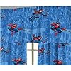 Amazing Spider-man Drapes with Tie Backs - 2 Panels each 42 inch X 63 inch Window Treatment: Home & Kitchen. Each panel measures 42 by 63 inches. This pair of drapes will complete the Amazing Spider-man bedding collection. Has a solid blue ground with illustrations of Spiderman spinning his webs. Sewn from 45 percent cotton, 55 percent polyester with 180 thread count.
