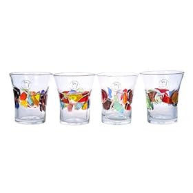 Amici Fresh Set of 4 Double Old Fashioned Glasses, 13-Ounce: Kitchen & Dining. It is a labor intensive process and each piece is truly a work of art. Amici's mouth blown, hand made Fresh Double Old Fashioned Glass features a modern flared shape and colorful glass chips. Glasses are made by hand then rolled in multi colored glass chips for a mosaic effect that forms a band around the middle. Glass is 4.2 inches tall by 3.8 inches wide with a capacity of 13 oz.
