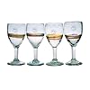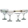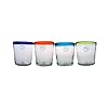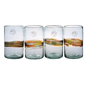 Amici Rainbow Set of 4 Hiball Glasses, 16-Ounce: Kitchen & Dining. Each glass is 5.1 inches tall by 3.1 inches wide with a 16 oz capacity. Amici's mouth blown, hand made Mexican Rainbow Cooler or Hiball Glass is produced using recycled glass. It takes several craftspeople to make each piece. After the glass is blown into shape, the glassblower twirls the piece while each color is hand applied by a different artesian. The result is a greenish glass with an amazing band of color around the middle. It is a labor intensive process that can only be done in Mexico. Expect slight variances in height and width due to the handmade nature of this glassware.