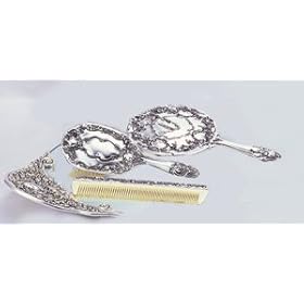 ANTIQUE 3 PC DRESSER SET - ANTIQUE 3 PIECE SILVER DRESSER SET: Home & Kitchen. ANTIQUE 3 PIECE SILVER DRESSER SET.
