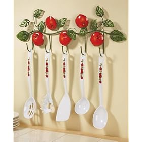 Apple Decor Utensils And Hanging Rack By Collections Etc: Kitchen & Dining. Metal rack, melamine utensils. Apple Utensil Rack: An apple a day keeps the blues away! This cute wall rack comes with five apple-motif utensils that hang from hooks. Hand wash utensils.