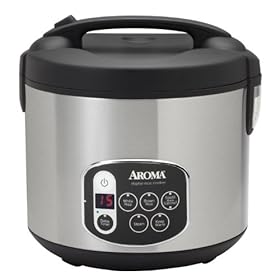 Aroma ARC-1010SB 20-Cup Digital Rice Cooker and Food Steamer: Kitchen & Dining. Add rice and water in the morning and rice will be hot and ready when it’s needed at night. This digital rice cooker from Aroma makes perfect rice, soups, stews and even steams meat and vegetables while simultaneously cooking rice. It flawlessly prepares up to 20 cups of any type of rice, with a water reservoir that channels away excess condensation. Specialized functions for white and brown rice cook any variety of rice or whole grains to perfection at just the press of a button. Sauté-Then-Simmer™ provides a high heat for sautéing, then automatically switches into a simmer once liquid is added - perfect for Spanish rice, packaged meals, risottos, stir frys, pilafs and more. This versatile appliance also prepares delicious soup, stew, gumbo, jambalaya and more. The 15-hour delay timer is perfect for families on the go. And when the cooking is done, the nonstick inner cooking pot and all accessories clean easily in the dishwasher.